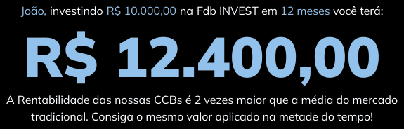 Torne-se Cliente da Fdb INVEST e tenha acesso a CCBs estruturadas com garantia real urbana, contratos claros e retorno previsível de 2% ao mês líquido de IR. Investir não é aposta. É método.